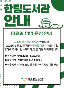 한림도서관 자료실 정상 운영 안내 (1.22~)