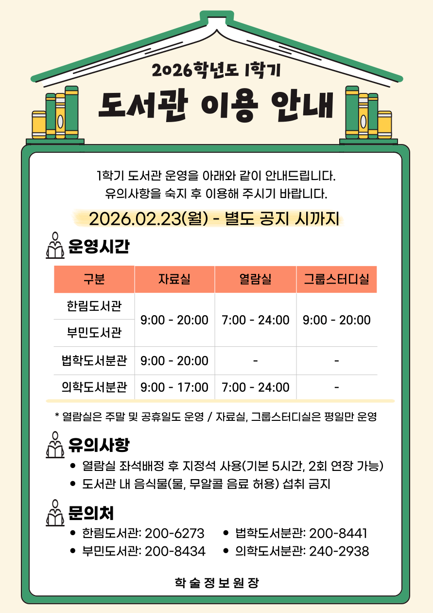 2026학년도 1학기 도서관 이용안내